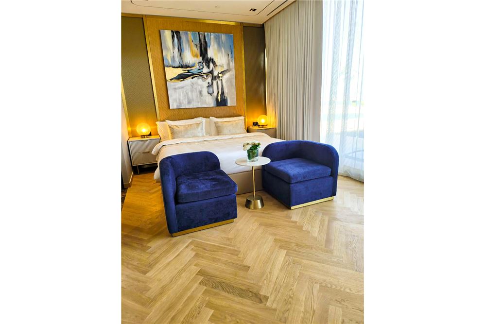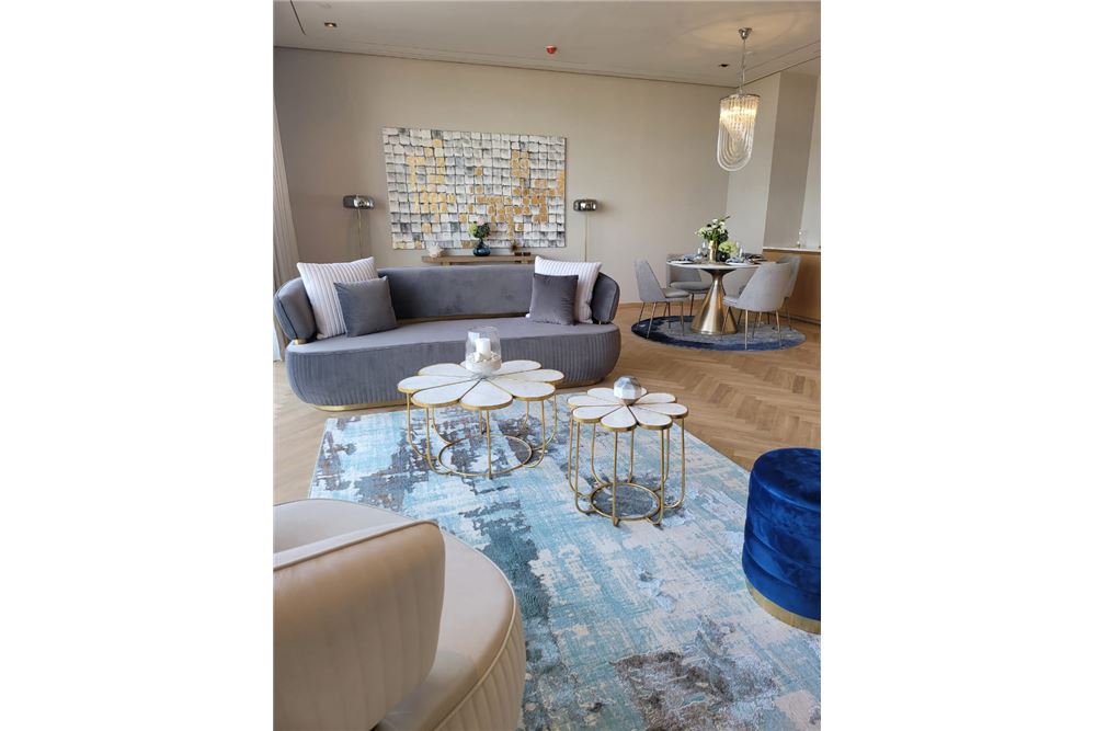 The units are fully furnished, with a balcony and large windows overseeing the majestic pool Grand Azur and the stunning turquoise waters of the Arabian Gulf.